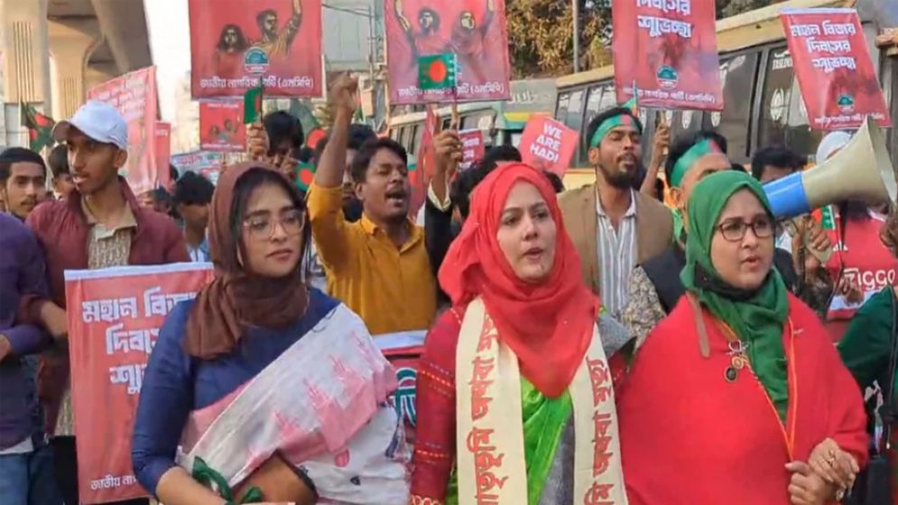 সরেজমিনে দেখা যায়, রাজধানীর প্রতিটি থানা থেকে নেতাকর্মীরা বিজয় মিছিলে অংশগ্রহণ করেছেন। মহান বিজয় দিবসের শুভেচ্ছা জানিয়ে বিভিন্ন ব্যানার, ফেস্টুন নিয়ে কয়েক হাজার নেতাকর্মী মিছিলে অংশ নেন। বিজয় মিছিলে বিভিন্ন স্লোগানে উজ্জীবিত নেতাকর্মীরা। বেশ কয়েকটি স্লোগান হলো, ‘গণভোটে হ্যাঁ বলি, সংস্কারের সাথে চলি’, ‘মুক্তির মূল সনদ গণভোট-গণভোট’, ‘এক হাদির কিছু হলে- জ্বলবে আগুন ঘরে ঘরে’ ইত্যাদি।